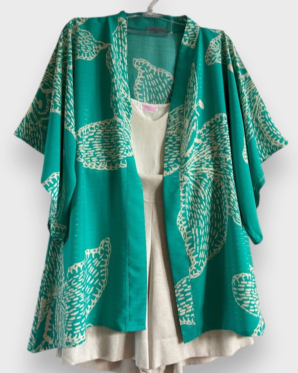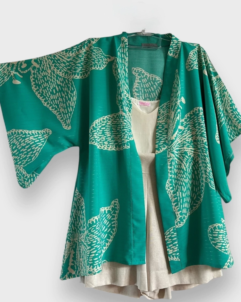 Nossos kimonos sao de fabricação propria, com caimento leve e fluido em tecido 100% viscose, nao esquenta , otimo para os dias mais quentes.