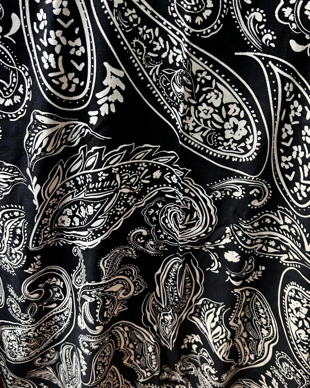 Charme e leveza define nosso Kimono Longo Manga 3/4 Preto e Off com Estampa Cashmere (Paisley), confeccionado em viscolinho 100% viscose, perfeito para quem busca conforto e estilo em qualquer ocasião.